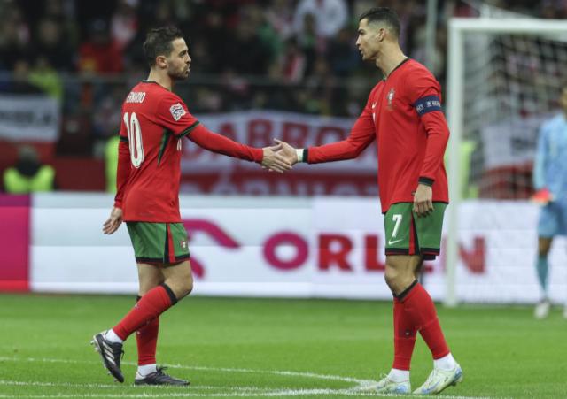 山不转,水还转。尽管C罗已到沙特联赛踢球,但10月12日,欧国联甲级联赛A组小组赛第3轮,他还是又一次遭遇莱万多夫斯基。尽管客场作战,葡萄牙队还是占尽优势。布鲁诺·费尔南德斯头球助攻,贝尔纳多·席尔瓦第26分钟首开纪录。第37分钟,拉斐尔·莱昂远射中柱,C罗补射进球。第78分钟,波兰队10号彼得·泽林斯基禁区斜射扳回一分。第88分钟,努诺·门德斯传中,波兰队5号中卫扬·贝德纳雷克自摆乌龙,比分锁定为3比1。葡萄牙队头一次在欧国联小组赛前三战取得三连胜,也成了本届欧国联甲级联赛上唯一一支小组前三战全胜的球队。